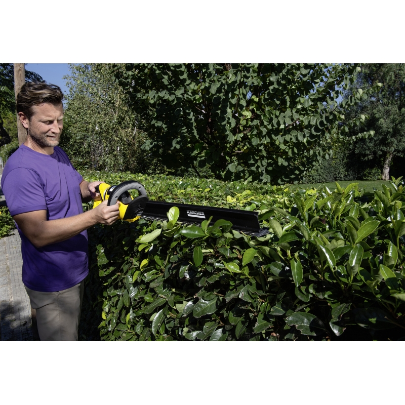 Foarfeca de tuns gardul viu cu acumulator de 36 V HGE 36-60 Battery - aparatul ideal pentru pentru un rezultat precis de tăiere. Datorită funcției de reglare a vitezei pe două niveluri, utilizatorul poate alege între o putere maximă și o viteză maximă, în funcție de lucrare. În plus, funcția de ferăstrău este ideală pentru tăierea ramurilor mai groase. O caracteristică suplimentară este mânerul, care poate fi rotit la 180°, oferind mai mult confort în utilizare. Alte caracteristici practice: peria pentru gardul viu care ajută ca resturile tăiate să cadă pe sol, în loc să rămână în gardul viu, lama foarte ascuțită asigură o tăiere precisă de fiecare dată. Protecția pentru lamă previne deteriorarea accidentală a clădirilor, a podelelor și chiar a lamei în sine și de asemenea, permite depozitarea în poziție verticală pe perete pentru a economisi spațiu. Foarfeca de tuns gardul viu este prevăzută cu funcția anti-blocare pentru a putea lucra fără întreruperi.