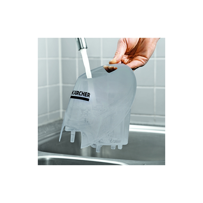 Aparatul de curățat cu aburi SC 4 EasyFix Iron de la Kärcher este echipat cu o duză EasyFix pentru podea și un fier de călcat cu abur. Acesta include, de asemenea, un rezervor de apă detașabil, reîncărcabil permanent, pentru a asigura o curățare neîntreruptă.