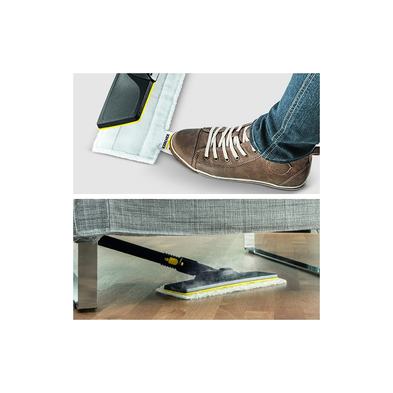 Aparatul SC 4 EasyFix Iron de la Kärcher este extrem de convenabil, oferind o curățare eficientă fără a utiliza substanțe chimice și putând fi utilizat oriunde în casă. Prin intermediul reglării aburului în două trepte, intensitatea aburului poate fi ajustată pentru a se potrivi suprafeței și nivelului de murdărie. Curățarea temeinică cu aparatul de curățat cu abur Kärcher elimină 99,999% din viruși* și 99,99% din toate bacteriile casnice obișnuite** de pe suprafețele dure tipice din casă. Cu ajutorul accesoriilor potrivite, aparatul furnizează rezultate de curățare remarcabile pe gresie, plite, hote de evacuare și chiar în cele mai mici spații. Chiar și murdăria persistentă este îndepărtată cu eficiență. Fierul de călcat cu abur sub presiune inclus reduce la jumătate timpul obișnuit de călcat. Duza de pardoseală EasyFix oferă o combinație impresionantă între o articulație flexibilă pentru o ergonomie excelentă și tehnologia lamelară pentru rezultate de curățare perfecte. Datorită sistemului convenabil de velcro, laveta de curățare a podelei poate fi atașată rapid și ușor la duza de podea și poate fi îndepărtată din nou fără a intra în contact cu murdăria. Rezervorul de apă detașabil poate fi reumplut permanent, asigurând astfel o curățare neîntreruptă. Alte detalii de echipare includ un compartiment integrat pentru depozitarea cablurilor, un compartiment pentru depozitarea accesoriilor și o poziție de parcare pentru duza de podea.