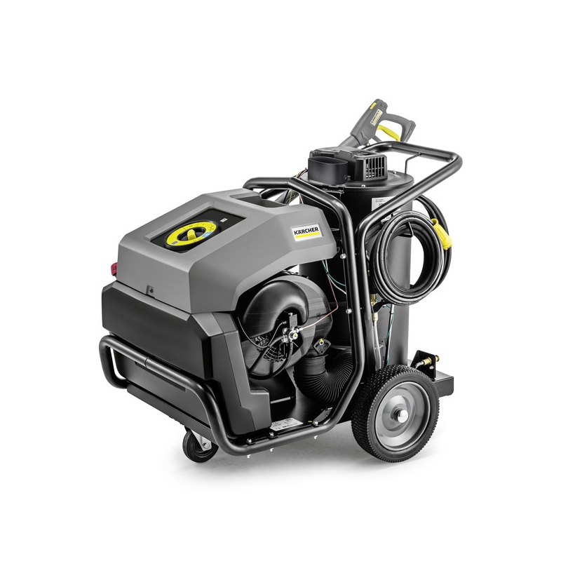 Fiabil, robust și mobil: aparatul de curățare cu apă caldă de înaltă presiune de clasă superioară cu cadru tubular din oțel și pompă cu arbore cotit impresionează în timpul utilizării zilnice în cele mai dure condiții.