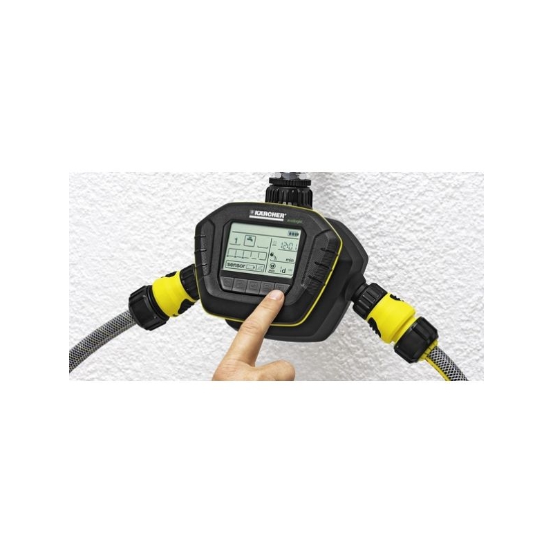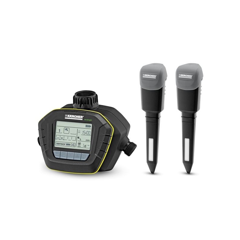 SensoTimer ST6 Duo eco!ogic cu doua iesiri independente de apa, irigare prin controlul umiditatii si in conformitate cu cerintele. Senzorii care sunt inclusi in setul de livrare- cate unul pentru fiecare iesire - masoara valoarea de umiditate din sol si transmit prin radio catre SensoTimer. Valorile de umiditate pot fi setate in 5 niveluri. Daca nivelul de umiditate scade sub valoarea dorita, irigarea incepe in mod automat la urmatoarea ora. Panoul de comanda demontabil si cele 5 butoane de operare fac din programare un joc de copii. Doua intervale de irigare pot fi setate pe zi (duata max. de irigare: 90 min). Datorita functiei eco!ogic, irigarea poate fi intarziata, de asemenea, de la 1 la 7 zile. Irigarea manuala este posibila in orice moment. Programarea irigarii poate fi suspendata timp de 24 de ore prin apasarea unui buton. SensoTimer ST6 Duo eco!ogic iriga in intregime in conformitate cu cerintele si este compatibil cu toate sistemele de prindere cunoscute. Conectorul robinetului si prefiltrul sunt incluse in set. 3 baterii de 9 volti sunt necesare (nu sunt incluse), una pentru panoul de comanda, cate una pentru fiecare senzor.