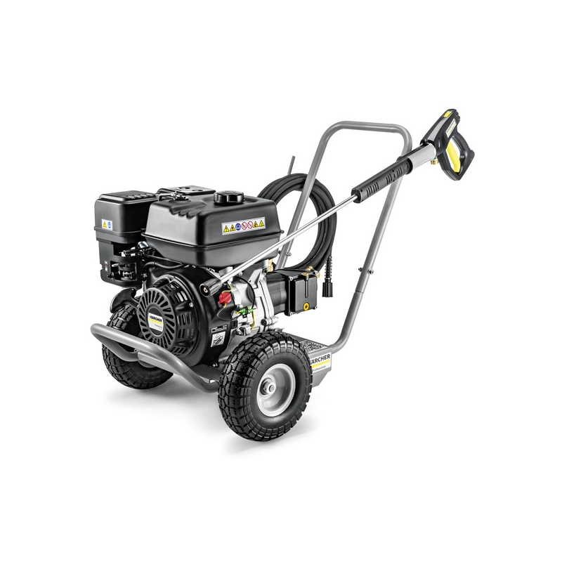 Aparatul de curățat cu înaltă presiune HD 6/15 G este extrem de ușor transportabil într-o mașină și poate realiza sarcini de curățare solicitante cu o presiune de lucru de până la 150 bari, o pompă robustă și un volum de apă de până la 600 litri pe oră. Motorul pe benzină integrat (EU STAGE V) permite autonomia față de sursele de alimentare externe, roțile garantează mobilitatea necesară la locul de utilizare, iar mânerul ergonomic și depozitul practic al accesoriilor asigură o utilizare facilă. Componentele, protejate prin supape termice și de siguranță, sunt ușor accesibile. Cadrul din oțel al HD 6/15 G Classic previne, de asemenea, în mod fiabil deteriorarea rezultată din șocurile mecanice externe.
